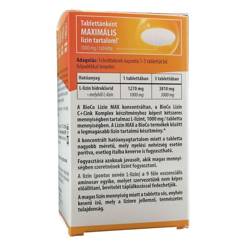 Az L-Lysine egy esszenciális aminosav, amelyet a test nem tud önmaga előállítani, csak étkezés által juthat hozzá. Ez az esszenciális aminosav szükséges néhány létfontosságú fehérje szintéziséhez. Elengedhetetlen a növekedéshez, a szövetek regenerálódásához, gyógyulásához, C-vitaminnal és a cinkkel kombinálva elősegíti az immunrendszer megfelelő működését, hozzájárul a herpesz előfordulásának csökkentéséhez. A BioCo Lizin MAX koncentráltan, a BioCo Lizin C+Cink Komplex készítményhez képest kétszeres mennyiségben tartalmaz L-lizint. A Lizin MAX a BioCo termékek között a legmagasabb lizin tartalmú készítmény.