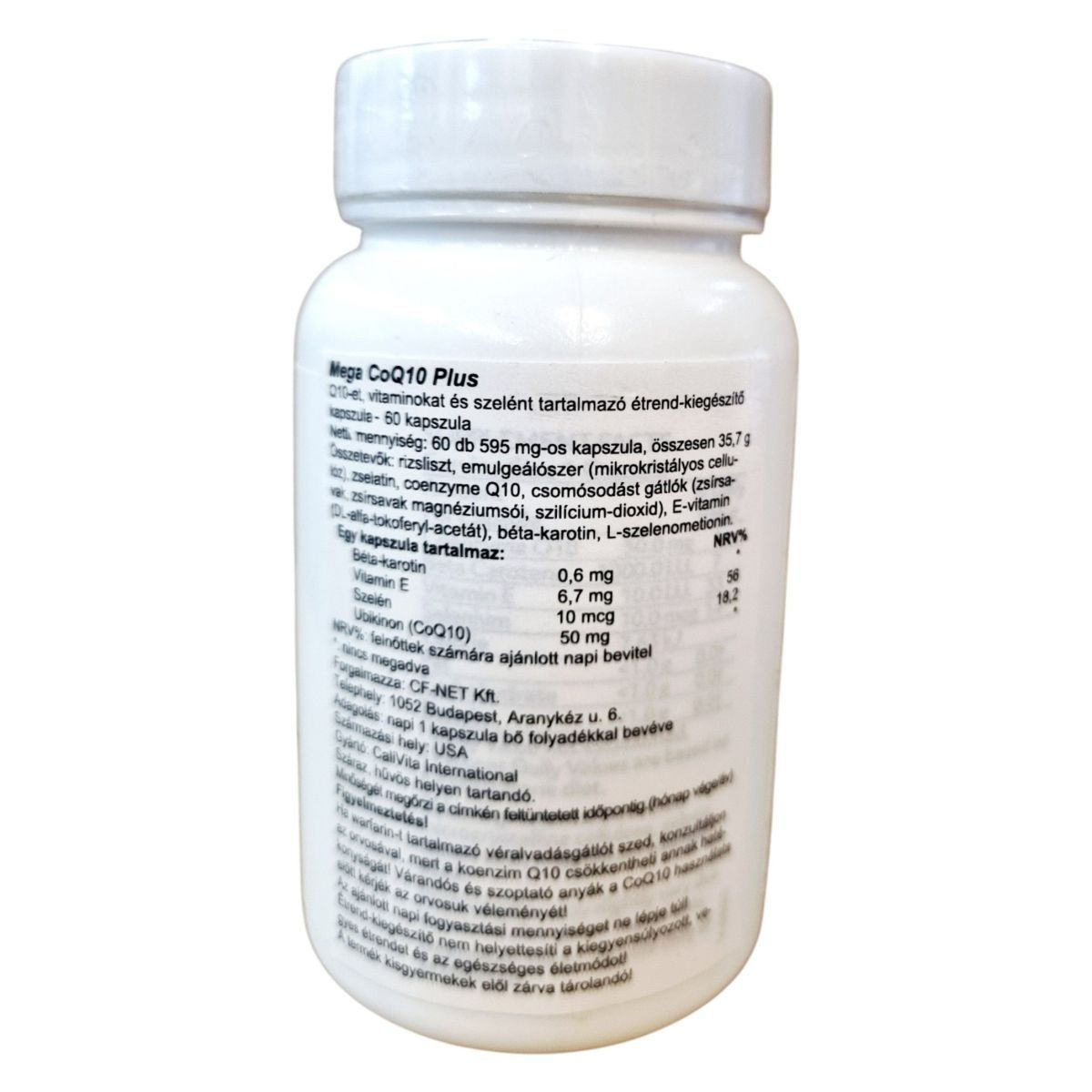 A Mega CoQ10 Plus egy étrend-kiegészítő, amely 60 kapszulát tartalmaz, és Q10-et, vitaminokat, valamint szelént kínál. A termék célja, hogy antioxidáns komplexként támogassa a szervezetet. A koenzim Q10 hozzájárulhat a sejtek energiatermeléséhez, míg az E-vitamin és a szelén az immunrendszer működését támogathatják. A termék forgalmazója a CF-NET Kft., és az USA-ból származik. A kapszulákat száraz, hűvös helyen kell tárolni, és fontos, hogy a gyermekek elől elzárva tartsuk. A termék minőségét a címkén feltüntetett időpontig őrzi meg.