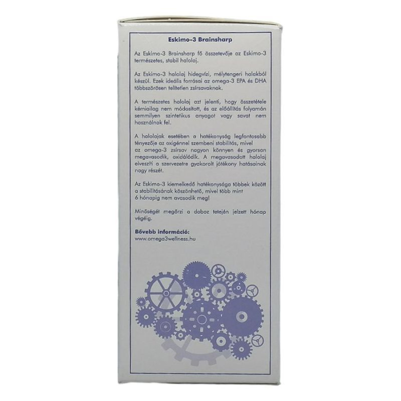 Az Eskimo-3 Brainsharp halolaj előnyösen befolyásolja az agy és memória funkciók működését. Természetes összetevőivel segíti az agysejtek energiaellátását jelentős fizikai és szellemi igénybevétel illetve túlterhelés esetén. Az agy természetes tápláléka, hosszú távon biztosítja az agy frissességét. Növeli a szellemi potenciált és kognitív teljesítőképességet, csökkenti a fáradékonyságot, kimerültséget. Javítja a koncentrációs képességet és a memóriafunkciókat.