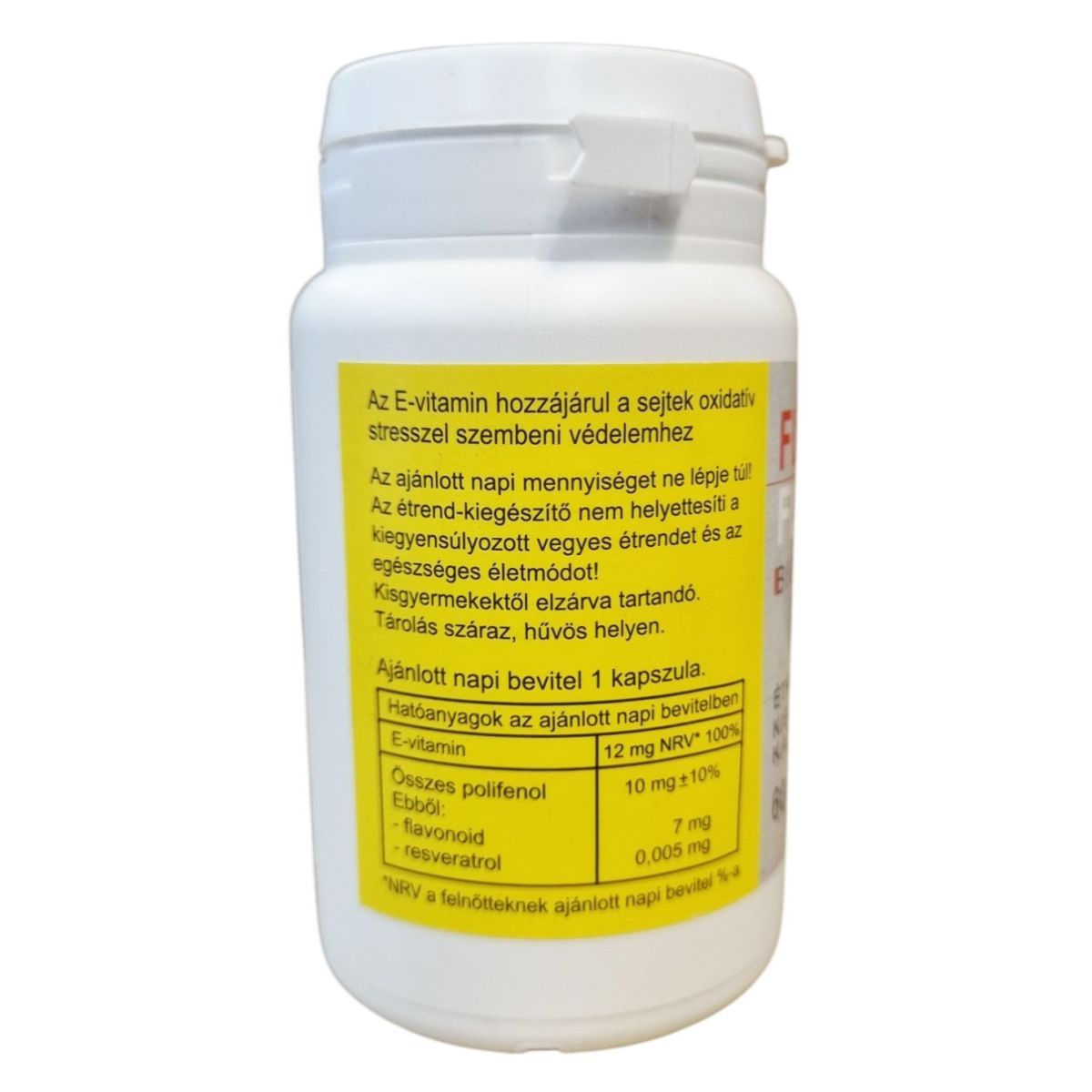 Az E-vitamint és bioflavonoidokat tartalmazó étrend-kiegészítő kapszula hozzájárulhat a sejtek oxidatív stresszel szembeni védelméhez. A polifenolok és flavonoidok jelenléte támogathatja az antioxidáns hatásokat.