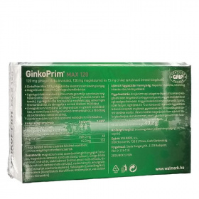 A GinkoPrim Max 120 ginkgo biloba kivonat és két ásványi anyag, a magnézium és a cink különleges kombinációja. A ginkgo biloba standardizált kivonata garantálja a pontosan meghatározott hatóanyagmennyiséget (flavon glikozidok, terpén-laktonok). A ginkgo biloba hozzájárul a megfelelő agyi vérkeringés fenntartásához, és támogatja a normál szellemi működést. A magnézium hozzájárul az idegrendszer megfelelő működéséhez, a normál pszichológiai funkció fenntartásához, a fáradtság és a kifáradás csökkentéséhez. A cink hozzájárul a normál szellemi működés fenntartásához.