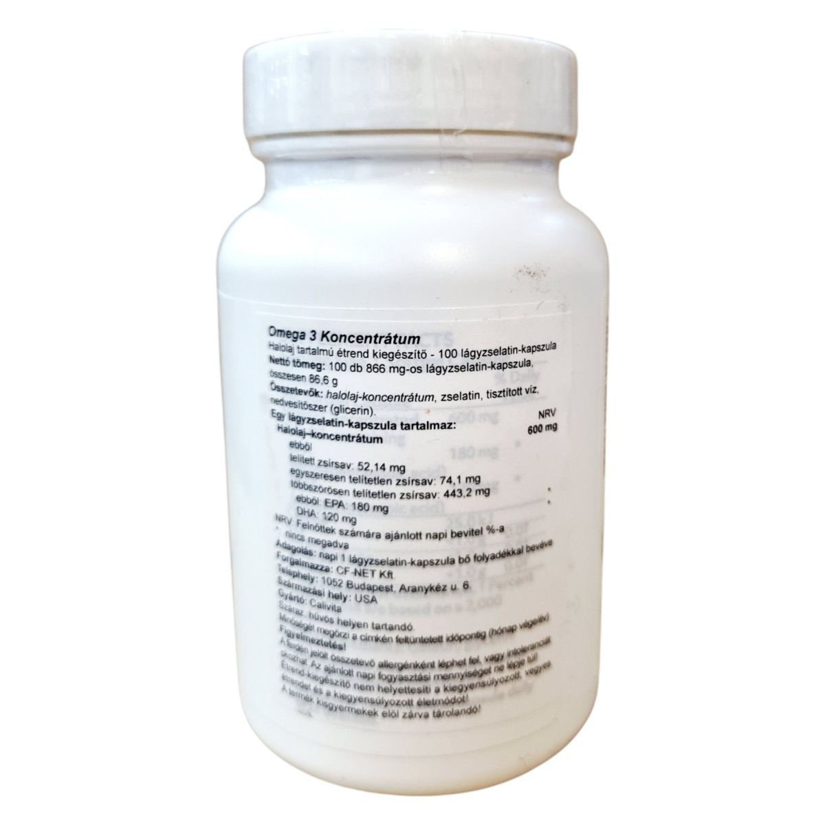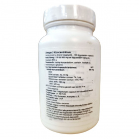 Az Omega 3 Koncentrátum egy halolaj tartalmú étrend-kiegészítő, amely 100 lágyzselatin-kapszulát tartalmaz. A termék EPA és DHA zsírsavakat tartalmazhat, amelyek hozzájárulhatnak a szív és érrendszer egészségének támogatásához. A termék gyártása a legszigorúbb minőségi előírások szerint történik, hogy biztosítsa a legmagasabb minőségű étrend-kiegészítőt. A termék szóját és szójából származó allergéneket tartalmazhat, ezért fogyasztása előtt konzultáljon kezelőorvosával. A termék nem helyettesíti a kiegyensúlyozott, vegyes étrendet és az egészséges életmódot. Gyermekek elől elzárva tartandó, és száraz, hűvös helyen tárolandó.