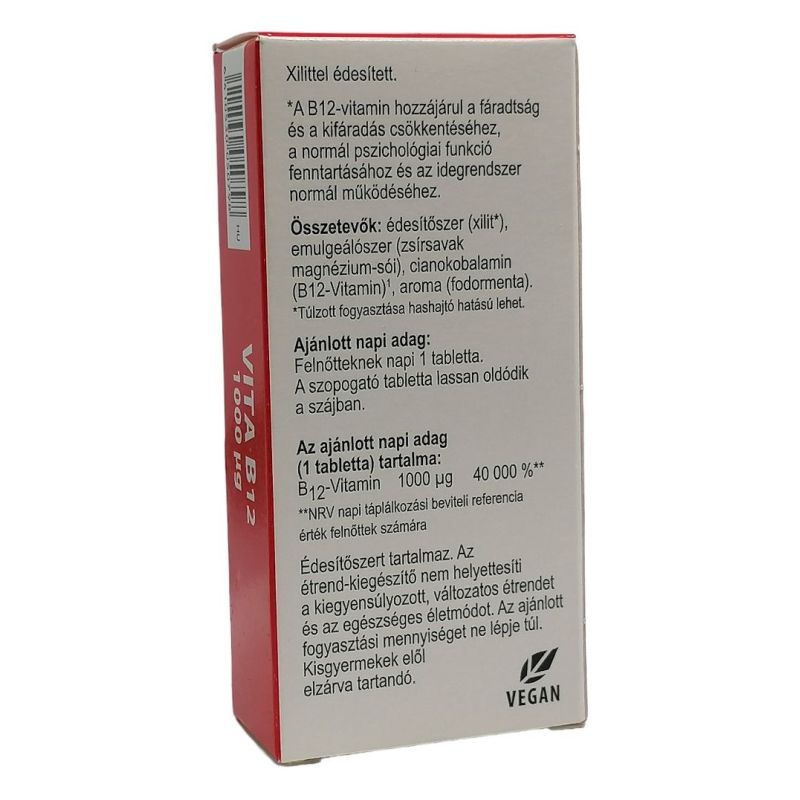 Összetevő, a napi adag (1 tabletta) tartalmaz: B12-vitamin: 1000 µg.