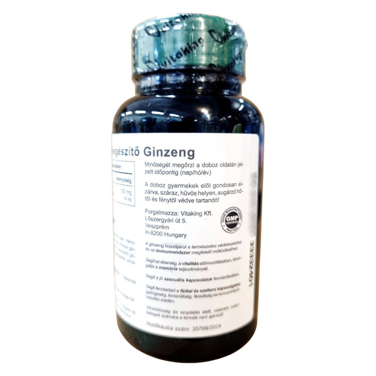 A Vitaking Ginzeng étrend-kiegészítő 60 vegán kapszulát tartalmaz, amely ginzeng kivonatot biztosít napi adagként. A ginzeng hozzájárulhat a természetes védekezéshez és az immunrendszer megfelelő működéséhez, segíthet az éberség és a vitalitás előmozdításában, valamint támogathatja a memória teljesítményét és a fizikai, szellemi teljesítmény fenntartását. A termék szedése nem helyettesíti a vegyes étrendet és az egészséges életmódot. Forgalmazza a Vitaking Kft., Veszprém, Magyarország.