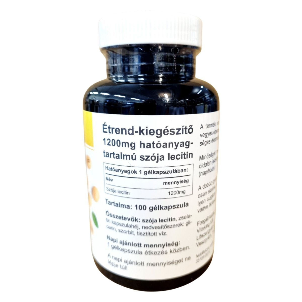 A Vitaking Szója Lecitin egy 1200 mg hatóanyag-tartalmú étrend-kiegészítő, amely 100 gélkapszulát tartalmaz. A termék fő összetevője a szója lecitin, amelyet zselatin kapszulahéj, glicerin, szorbit és tisztított víz egészít ki. A napi ajánlott mennyiség 1 gélkapszula, amelyet étkezés közben javasolt bevenni. Fontos, hogy a napi ajánlott mennyiséget ne lépje túl, és a termék nem helyettesíti a vegyes étrendet és az egészséges életmódot. A terméket száraz, hűvös helyen, sugárzó hőtől és fénytől védve kell tárolni, gyermekek elől elzárva. A Vitaking Kft. által forgalmazott termék notifikációs száma 35191/2024.