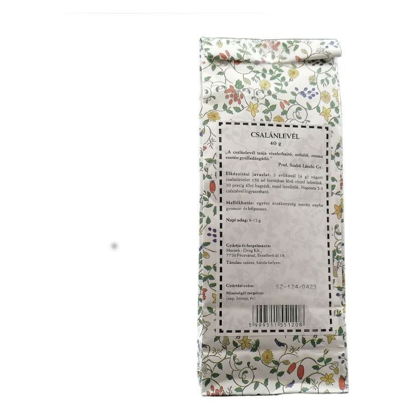 Elkészítési javaslat: 2 evőkanál (4 g) vágott csalánlevelet 150 ml forrásban lévő vízzel leöntünk. 10 percig állni hagyjuk, majd leszűrjük. Naponta 2-3 csészével fogyasztható. Mellékhatás: egyéni érzékenység esetén enyhe gyomor- és bélpanasz. Napi adag: 8-12 g.