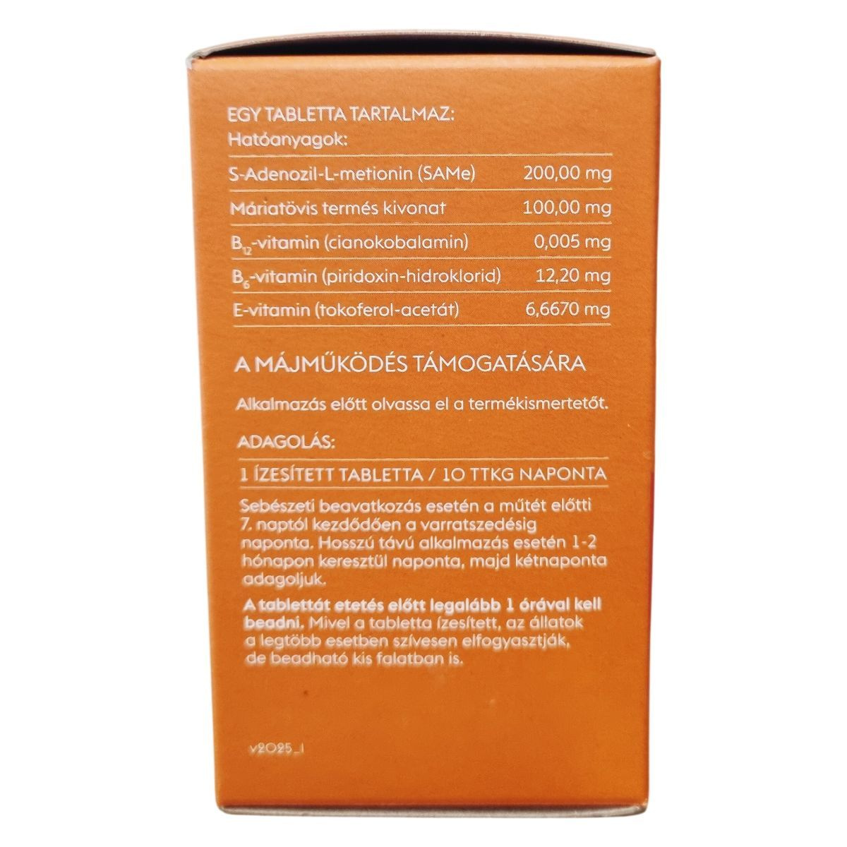 A termék a kutyák májműködésének támogatására készült, és az állatok általában szívesen fogyasztják az ízesített tablettát.
