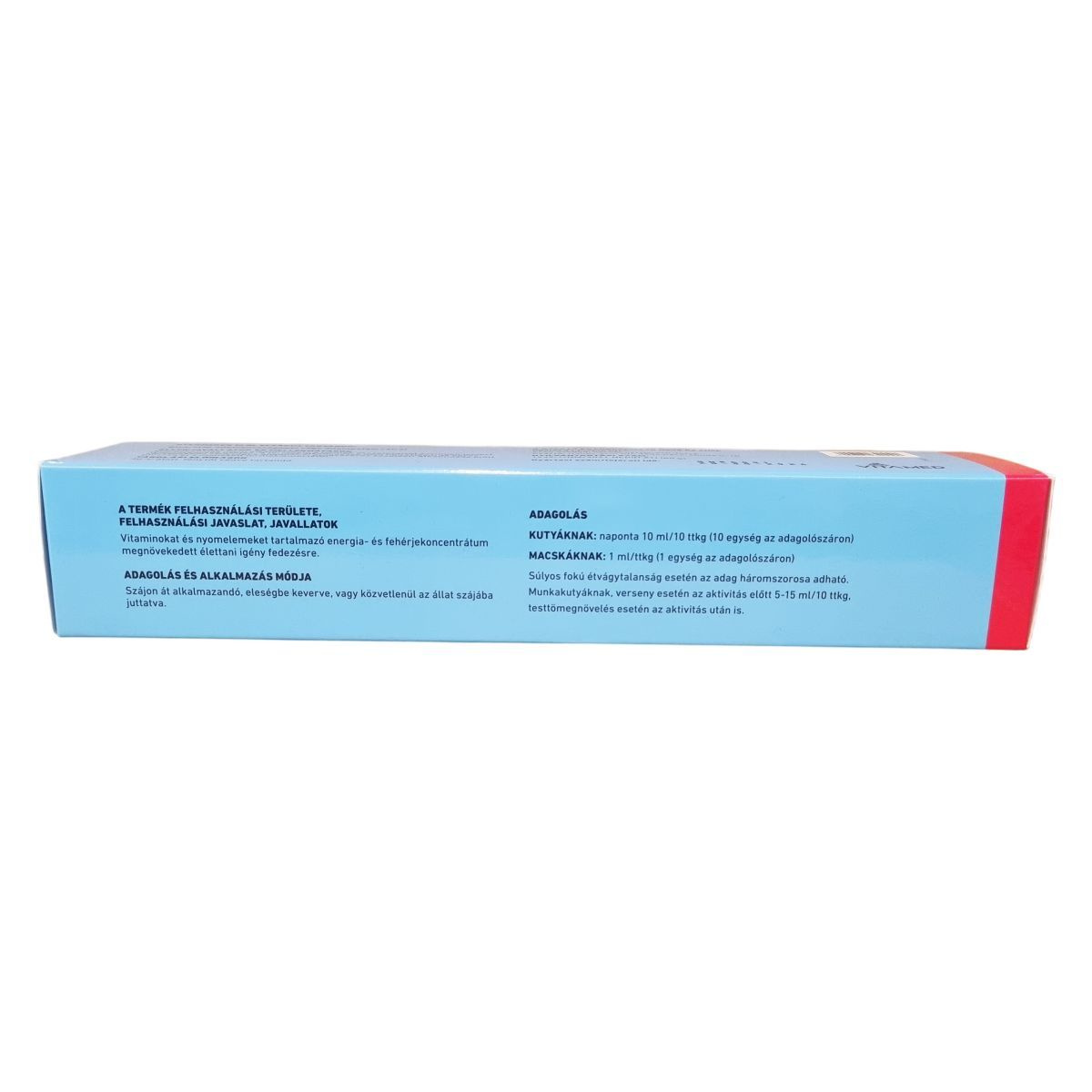 Munkakutyáknak, verseny előtt 5-15 ml / 10 testtömegkilogramm; testtömegnövelés esetén az aktivitás után is