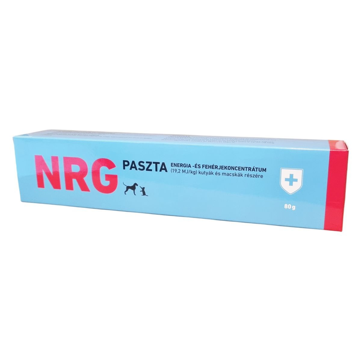 Az NRG Paszta egy energia- és fehérjekoncentrátum kutyák és macskák részére, amely vitaminokat, nyomelemeket és fontos aminosavakat tartalmaz. A készítmény rizsfehérjéből, elágazó szénláncú aminosavakból (BCAA), glükóz szirupból, fruktózból, valamint halolajból és napraforgóolajból készül. Kiegészítő összetevői között szerepel a kollagén is. A hatóanyagok között megtalálhatók a B-vitamin komplex tagjai, biotin, inozitol, koenzim Q10, karnitin, taurin, lecitin, valamint számos ásványi anyag, mint mangán, jód, cink, szelén, réz és vas. A termék magas energiatartalma révén hozzájárulhat a megnövekedett élettani igények kielégítéséhez, különösen étvágytalanság vagy fokozott fizikai aktivitás esetén. Az adagolás rugalmasan igazítható az állat állapotához és igényeihez. A terméket szájon át kell adni, állateledelbe keverve vagy közvetlenül az állat szájába juttatva. Tárolása 30 °C alatt, fénytől védve javasolt.