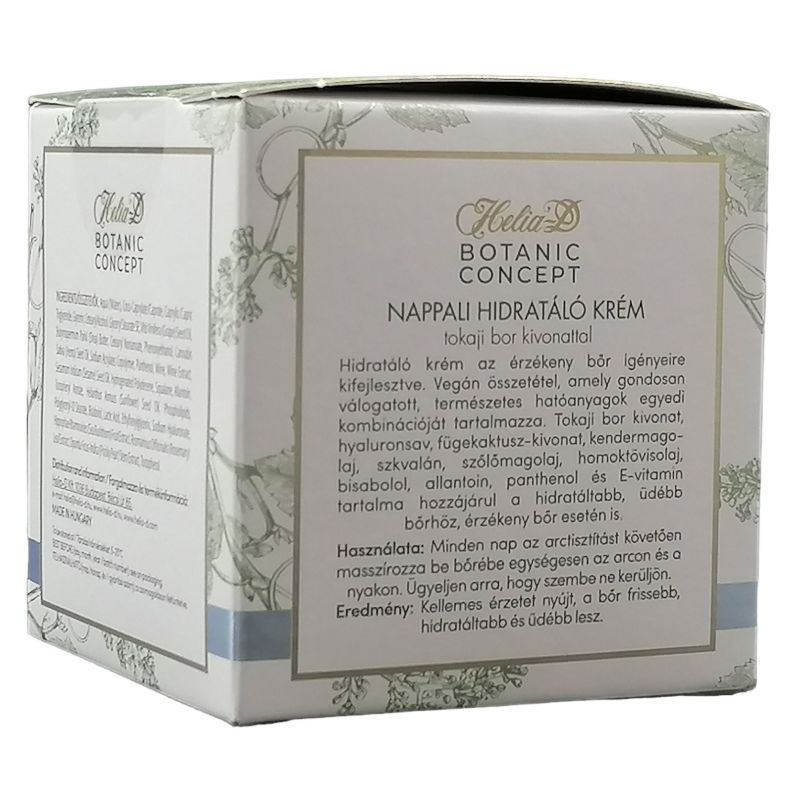 Vegán összetétel, amely gondosan válogatott, természetes hatóanyagok egyedi kombinációját tartalmazza. Tokaji bor kivonat, hyaluronsav, szőlőmagolaj, shea vaj, panthenol, hydromanil és E-vitamin tartalma hozzájárul a hidratáltabb, üdébb bőrhöz.