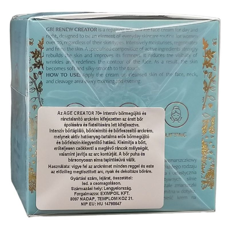 Nappali és éjszakai használatra alkalmas krém minden fajta 70 év feletti bőrre.
