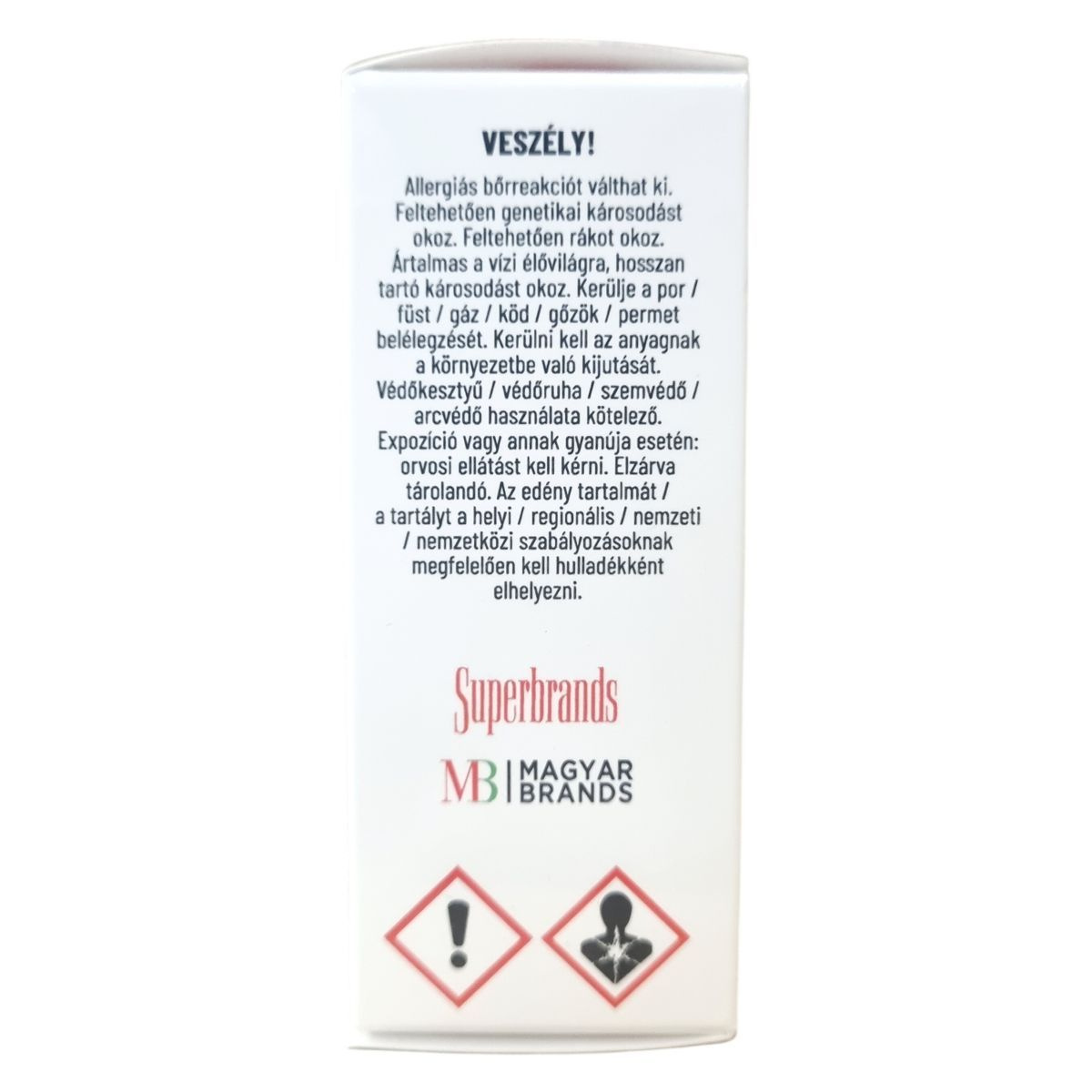 Feltehetően genetikai károsodást és rákot okoz. Ártalmas a vízi élővilágra, hosszan tartó károsodást okoz. Kerülje a por, füst, gáz, köd, gőzök vagy permet belélegzését. Kerülni kell a környezetbe való kijutást. Védőkesztyű, védőruha, szemvédő és arcvédő használata kötelező. Expozíció vagy gyanúja esetén orvosi ellátást kell kérni. Elzárva tárolandó. Az edény tartalmát és a tartályt a helyi, regionális, nemzeti és nemzetközi szabályozásoknak megfelelően kell hulladékként elhelyezni.