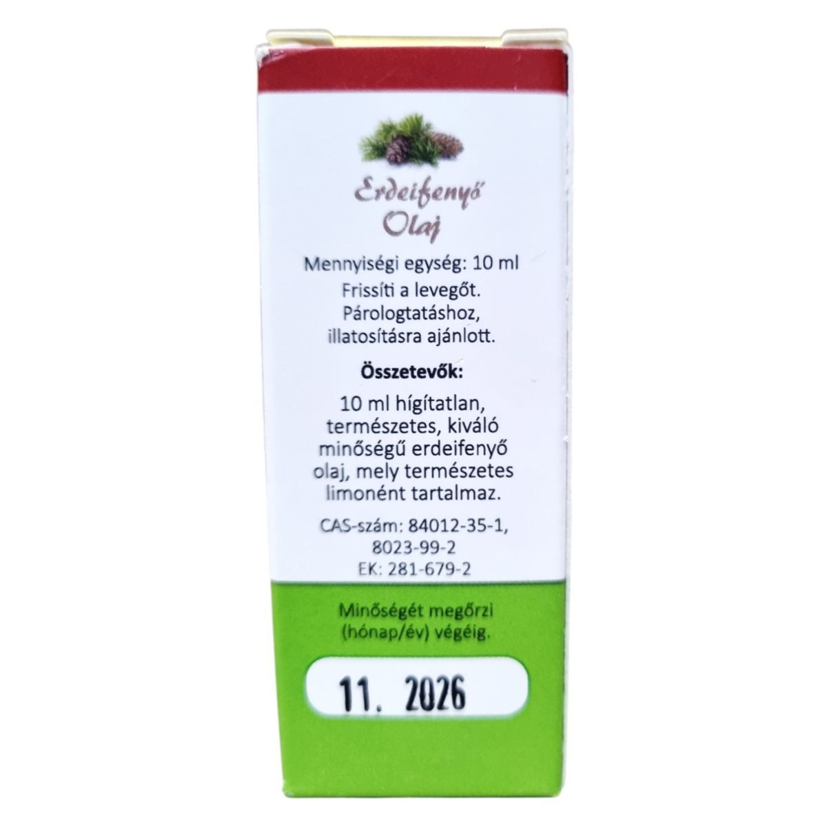 10 ml hígítatlan, természetes, kiváló minőségű erdeifenyő olaj, mely természetes limonént tartalmaz.