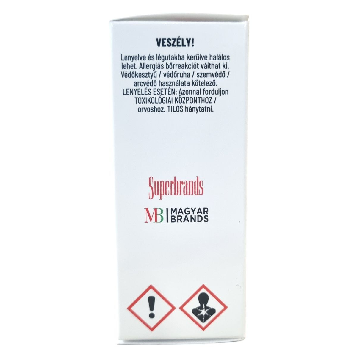Veszély! Lenyelve és légutakba kerülve halálos lehet. Használatakor védőkesztyű, védőruha, szemvédő és arcvédő használata kötelező. Lenyelés esetén tilos hánytatni, azonnal orvosi segítséget kell kérni.