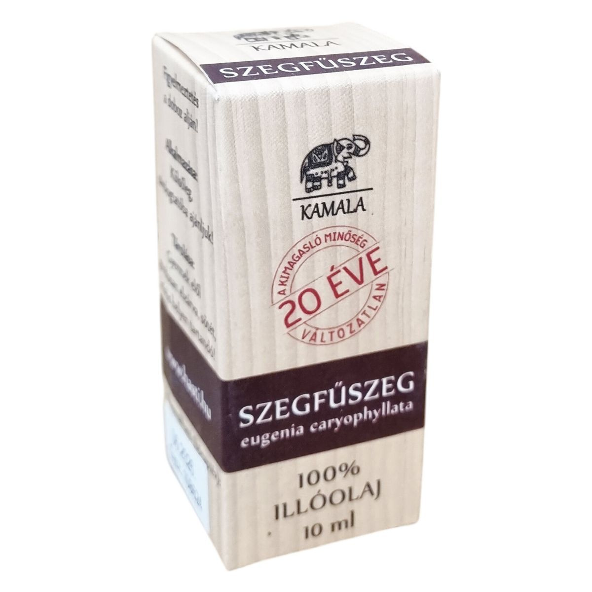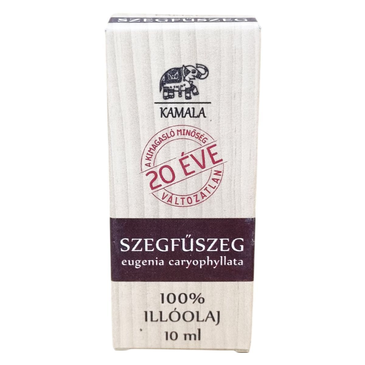 A Kamala szegfűszeg illóolaj eugenia caryophyllata növényből származik, kimagasló minőségű, százszázalékos tisztaságú termék. Megszentelt termék, mely 20 éve változatlan minőségben kapható. Kiszerelése 10 ml, mely praktikus használatot biztosít. A termék használata kizárólag külsőleg javasolt, különösen párologtatóban. A készítmény veszélyes összetevőket tartalmaz, ezért körültekintő használat szükséges.