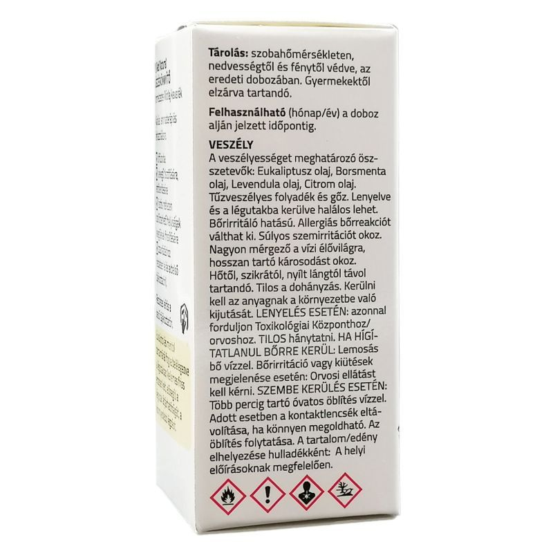 Száraz inhaláció: tegyél 1 csepp illóolajat a papírzsebkendőre, majd 2-3 cm-re az az orrodtól az illatot lélegezd, be vagy egyszerűen csak szippants egyet az üvegcséből. Tisztító illatos gőz-inhalálás: Az Illóolajos inhalálással kitisztítja az arc- és orrüreget, enyhítheti a fejfájást. Nátha, köhögés, influenza, torokgyulladás, gégelob, orrmellék- és homloküreg-gyulladás, valamint mandulagyulladás esetén inhalálj A légzéskönnyítő illóolaj keverékből tegyél 2-3 cseppet 1 liter forró vízhez, majd a fejed letakarva, szemed becsukva inhalálj. Az inhalálás meleg vízzel és ne forróval történjen! Fellazítja a váladékot, illetve segíti annak könnyed eltávozását. Felszabadítja a légzőszervi járatokat.