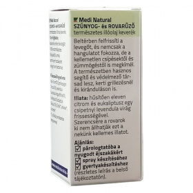 Szerencsére a rovarok ki nem állhatják ezt a nekünk egyébként kellemes illatot. A természetben hasznos segítő és védelmező társad lesz kerti grillezésnél, kirándulásoknál. Téged is imádnak a kis vérszívó szúnyogok, és semmi kedved osztozkodni velük a lakásodon? Akkor ez a természetes illóolaj keverék Neked készült. Nem kell, hogy a rovarcsípés elleni védekezés azt jelentse, hogy mérgező, irritáló anyagokat keljen elviselned. A MediNatural Szúnyog és Rovarűző illóolaj keverék hatóanyagait kizárólag 100%-os természetes illóolajok alkotják.