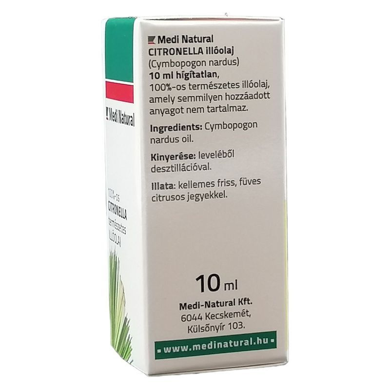 A Medinatural Citronella illóolaj ideális választás, rovarriasztó és rovarűző készítmények hatóanyagaként valamint dezodoráló, bőrtisztító, erősítő, élénkítő kozmetikai készítmények hatóanyagaként. Az antiszeptikus tulajdonsága miatt a levegőbe porlasztva kiváló fertőtlenítő és a kellemetlen szagokat is semlegesíti.