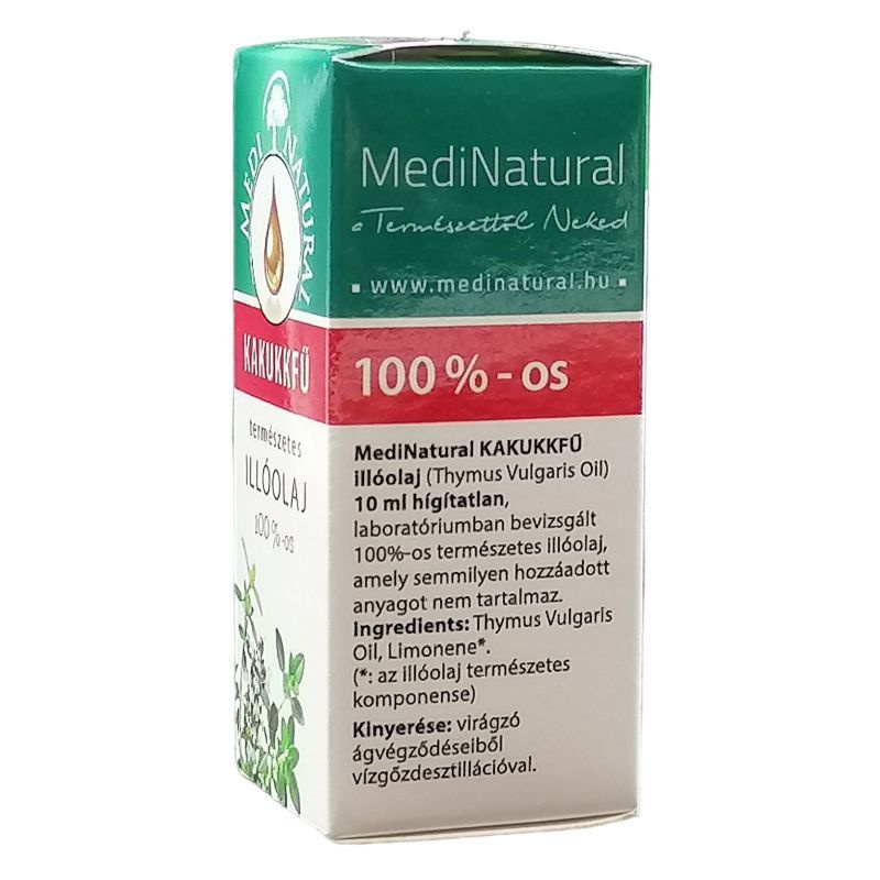 Különösen felső légúti problémák, hurutok esetén előnyős az alkalmazása. Valamint bőrgomba elleni készítményekben, fertőtlenítő, csíraölő, összehúzó, gyulladáscsökkentő, a bőr vérkeringését serkentő hatása miatt. A kakukkfű illóolaj a párologtatóba cseppentve felső légúti megbetegedésekben váladékoldó hatású. Emellett kiválóan alkalmas szobáink levegőjének fertőtlenítésére is. A kakukkfű illóolaj jótékony hatást fejt ki a légcsövekre hörghurut, szamárköhögés és asztmás panaszok esetén. A kakukkfű illóolaj belégzéssel a tüdőhólyagocskákba kerül, és így közvetlenül a betegség helyén hat.