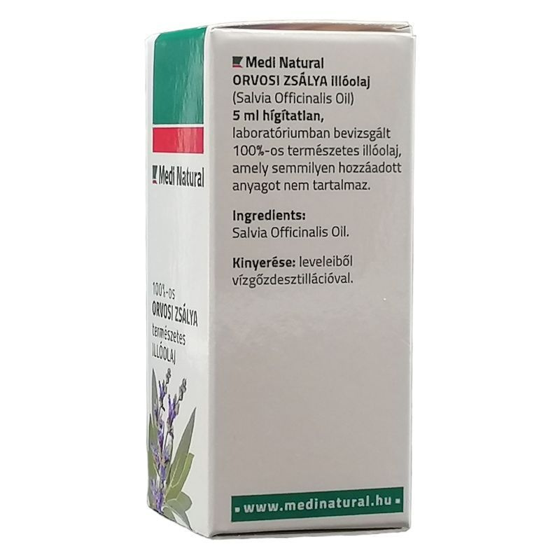 100%-os orvosi zsálya illóolaj (Salvia Officinalis Oil). Hígítatlan, természetes összetételű, hozzáadott anyagokat nem tartalmaz.