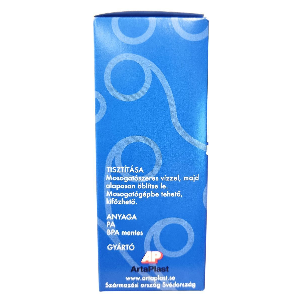 Az itató-etető pohár 80 ml-es mércézett kivitelben készült, és svéd gyártmányú. Kifejezetten gyermekek és felnőttek számára tervezték, hogy cumisüveg helyett kisebb mennyiségű folyadékot adhassanak vele. A hosszú csőr kialakítása miatt nem zavarja meg a baba szopási készségét. A termék mosogatószeres vízzel tisztítható, mosogatógépbe tehető és kifőzhető. Az anyaga PA, és BPA mentes. A gyártó ArtaPlast, a forgalmazó pedig a Pro-Mama Kft. A termék származási országa Svédország.
