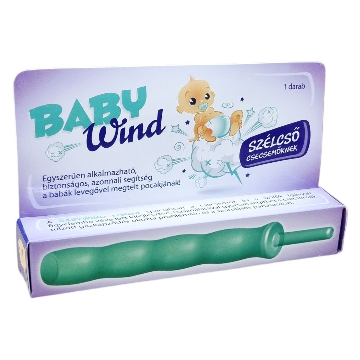 A BABYWIND szélcső speciálisan a csecsemők és a szülők igényeit figyelembe véve lett kifejlesztve. Használatával gyorsan segíthet a csecsemők túlzott gázképződés okozta problémáin és a szorulásos panaszokon. A puha, speciális egészségügyi anyag és az innovatív, lekerekített, ütközővel ellátott forma biztonságossá és egyszerűvé teszi a mindennapi használatot, mind a baba, mind a szülő számára. Más szélcsövekkel ellentétben a különleges kialakítás és az áttetsző anyag egyszerűvé teszi a tisztítást. Az eszköz tisztítása történhet meleg vízzel, folyékony szappannal, antibakteriális kézmosószerrel vagy szükség esetén 1-2 perces kifőzéssel. Orvostechnikai eszköz.