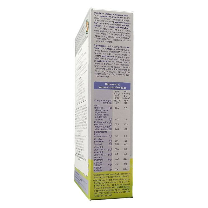Holle bébiétel, banános tejkása. Könnyen emészthető kása kifejezetten csecsemőknek. Bio, cukrot nem tartalmazó termék. Glutén tartalmú. Főzés nélkül, csak víz felhasználásával egyszerűen elkészíthető.