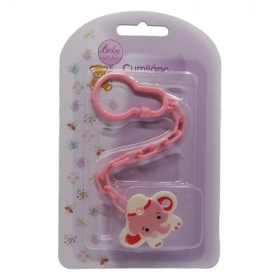 Gyorsan és biztonságosan rögzíthető a baba ruhájához, lekerekített formájú, megakadályozza, hogy a cumi leessen, s emiatt bepiszkolódjon vagy elvesszen. A rögzítőkampó biztosítja, hogy a cumit egyszerű legyen felerősíteni a lánc végére. Véletlenszerű színben és figurával szállítjuk.