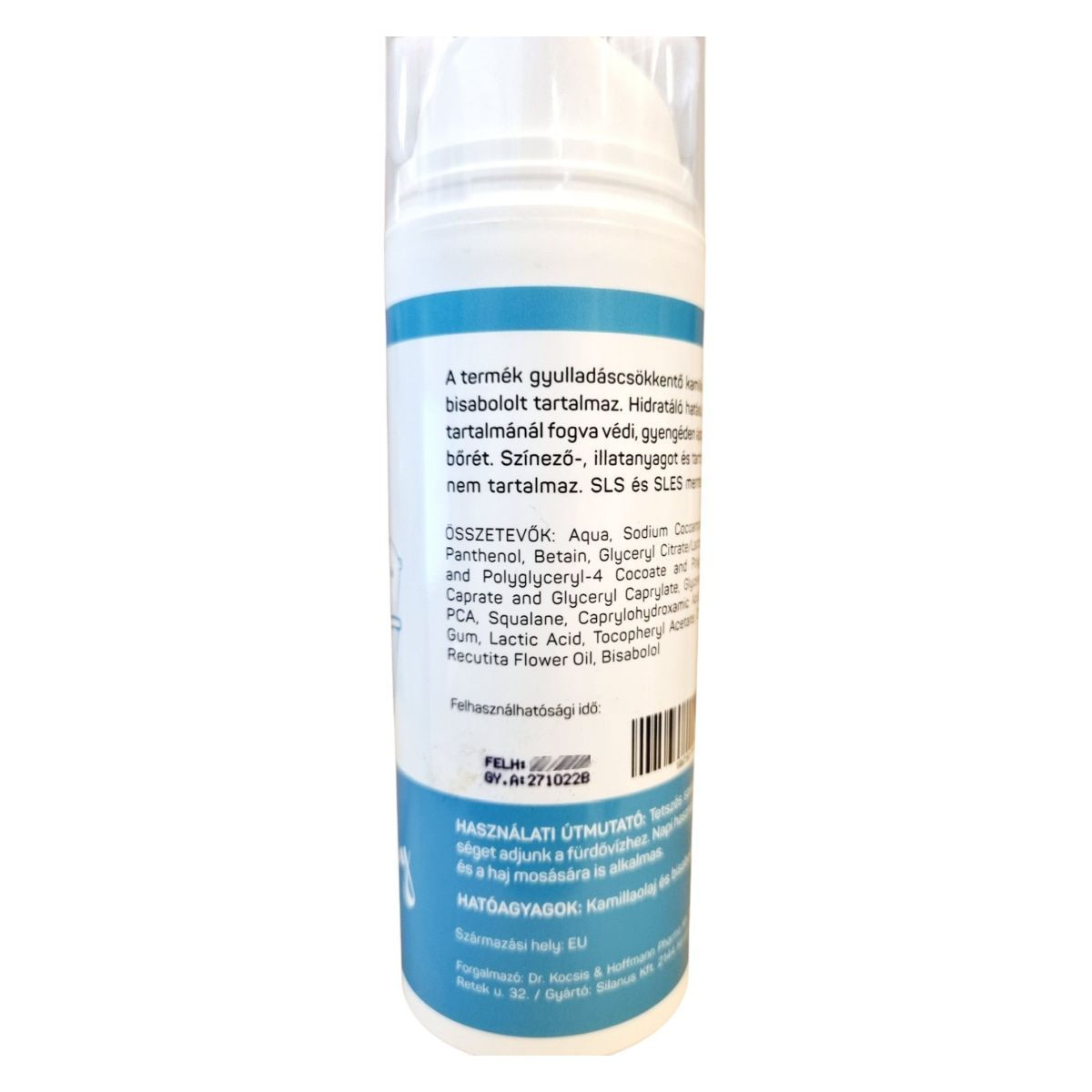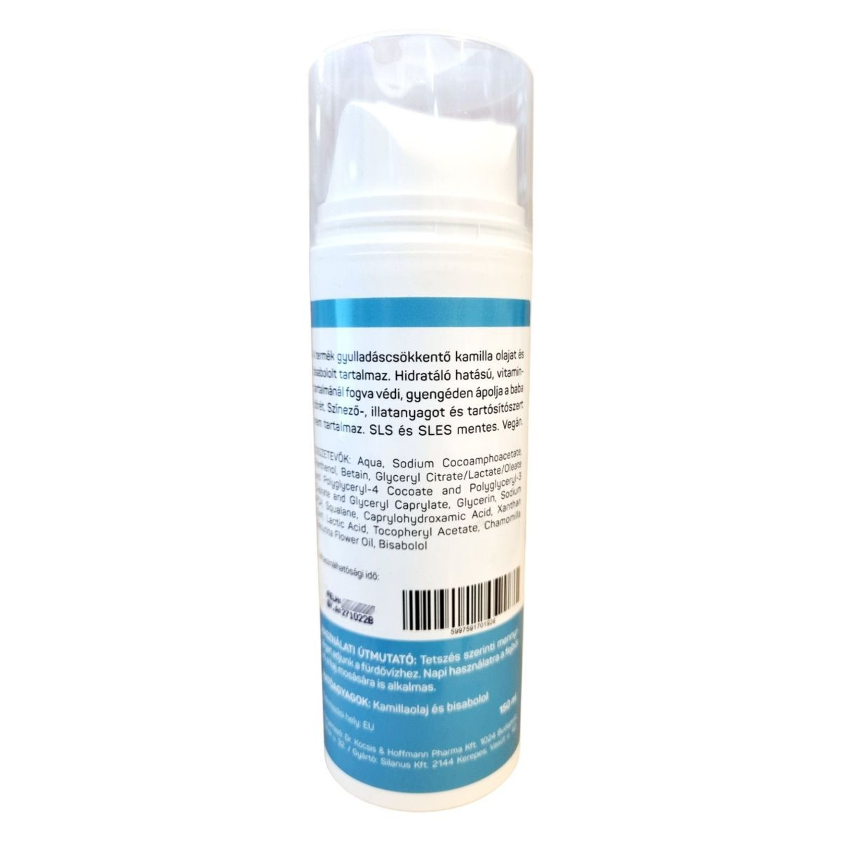 A termék gyulladáscsökkentő kamilla olajat és bisabololt tartalmaz. Hidratáló hatású, vitamintartalmánál fogva védi, gyengéden ápolhatja a baba bőrét. Színező-, illatanyagot és tartósítószert nem tartalmaz.