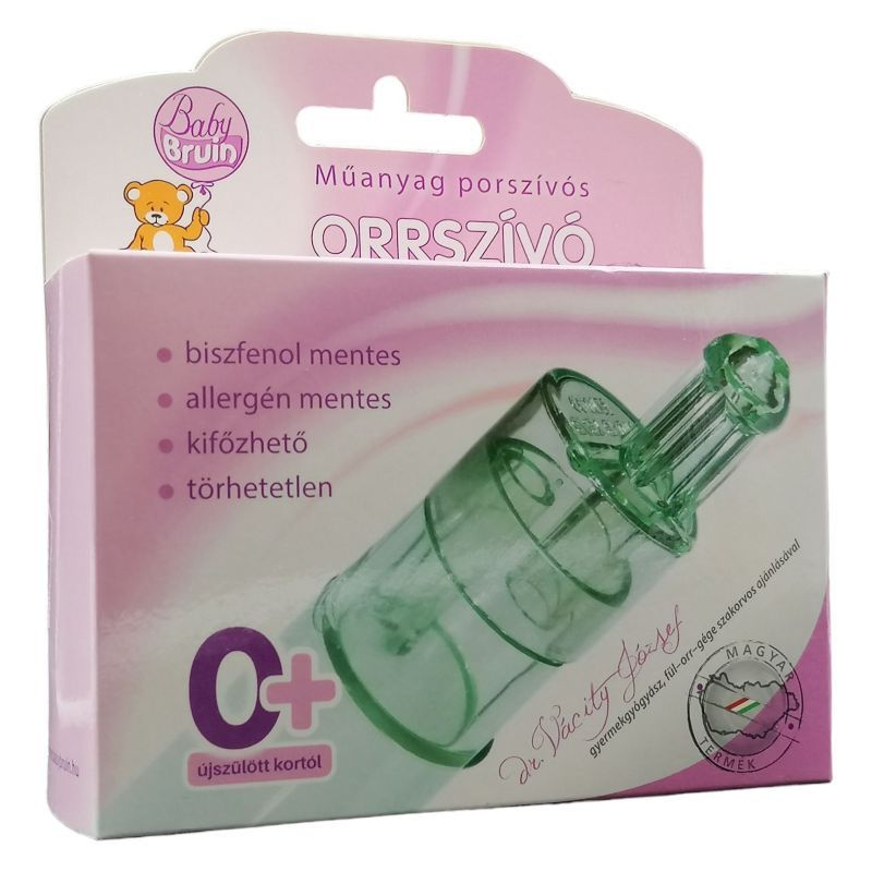 Műanyagból készült, porszívós orrszívó. Egyedülálló gömbölyített szívófelületének köszönhetően használata biztonságos gyermeke számára. Nem okoz fájdalmat, vérzést, hámsérülést.