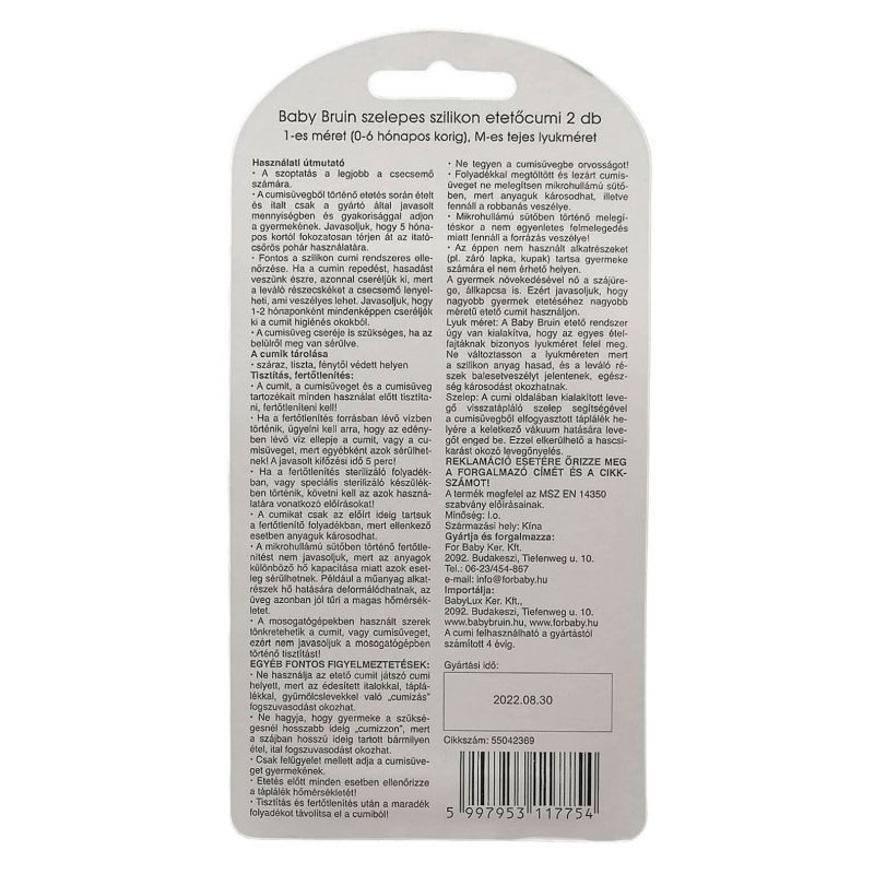 M-es (tejes) méretű szilikon, gömbölyű (cseresznye) végű, szelepes etetőcumi. Elősegíti a baba természetes szopási ritmusát. 0-6 hónapos korig ajánlott etetőcumi.
