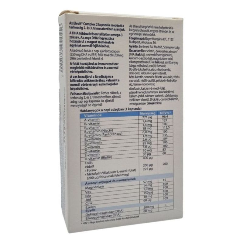De miért is fontos a vitaminpótlás a második és harmadik trimeszter során is? A terhesség különböző szakaszaiban mind a baba, mind pedig a mama tápanyagigényei változnak. Az Elevit Complex 2 megfelelő mennyiségben tartalmaz olyan mikrotápanyagokat, amelyre terhességed tizenharmadik hetétől szüksége van a kisbabádnak és neked. Nemcsak folsavat, Metafolin-t és vasat tartalmaz, de DHA-t is a magzat szemének és agyának megfelelő fejlődéséhez. A vitaminok két fő jellegzetessége, hogy fontos szerepet játszanak az életfolyamatok szabályozásában, és hogy szervezetünk nem képes előállításukra. Hiányuk súlyos betegségeket okozhat, ilyen a C-vitamint nélkülöző táplálékok fogyasztásakor bekövetkező skorbut vagy a D-vitamin hiány okozta angolkór. Naponta egy szem, Elevit - 30 év tudományos tapasztalatával.