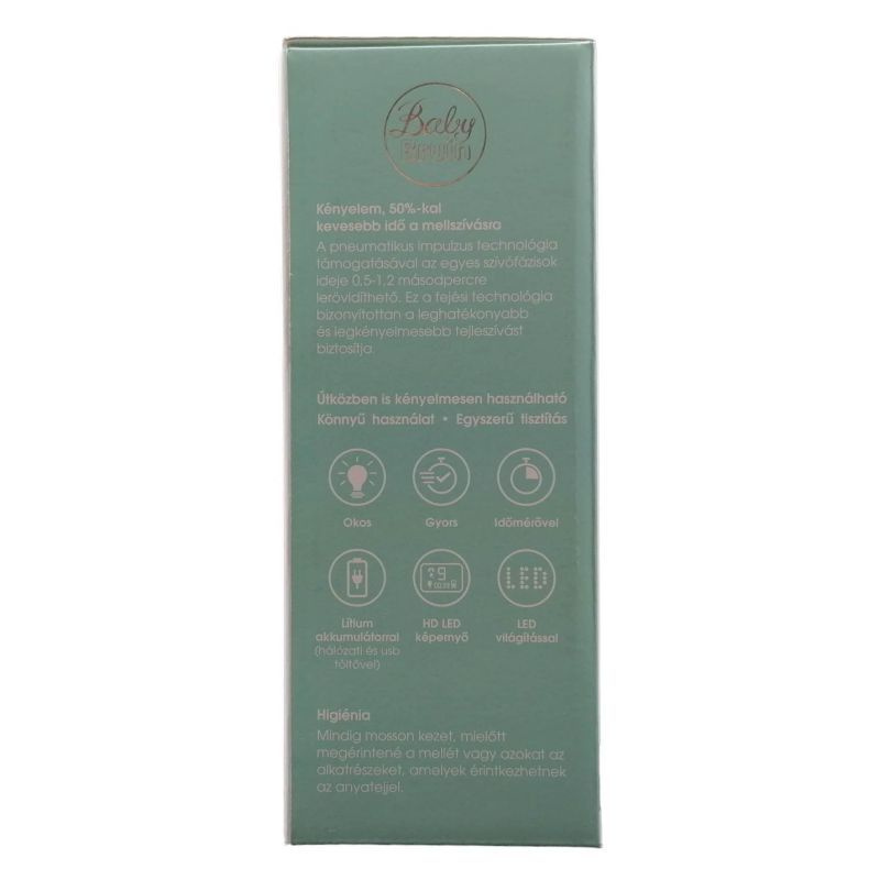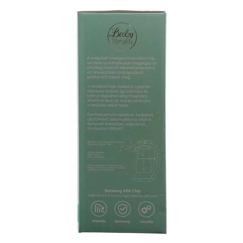 BabyBruin okos elektromos mellszívó, BPA mentes széles szájú cumisüveggel, érintőképernyős kijelzővel, beépített, újratölthető akkumulátorral, 9 erősségi fokozattal.