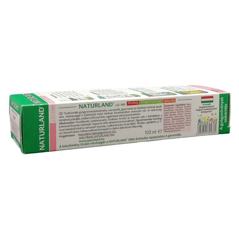 Figyelmeztetés: Külsőleg! Gyermekektől elzárva tartandó! Szembe ne kerüljön! Összetevők: Aqua, Petrolatum, Cetearyl Alcohol, Paraffinum Liquidum, Chamomilla Recutita, Calendula Officinalis, Beta-Carotene, Sodium Lauryl Sulfate, Alcohol, Methylparaben, Salvia Sclarea Oil, Linalool, Salvia Officinalis Oil. Tárolás: Legfeljebb 25°C-on, fénytől védve. Töltettérfogat: 100 ml.