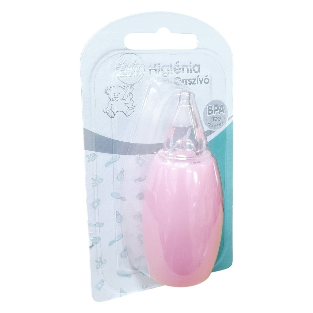 I. osztályú minőségű Baby Bruin orrszívó, amely kisgyermekek orrából segít eltávolítani a váladékot. Anyaga műanyag, származási helye Kína. Reklamáció esetén meg kell őrizni a forgalmazó adatait és a cikkszámot. Az importőr BabyLux Ker. Kft.