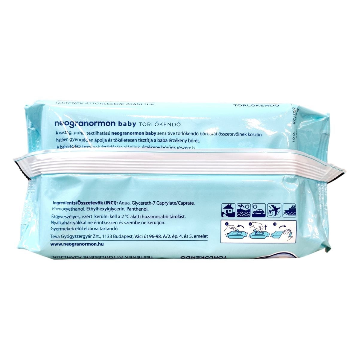 A neogranormon baby sensitive törlőkendő vastag, puha, textilhatású, bőrbarát összetevőinek köszönhetően gyengéden ápolja és hatékonyan tisztítja a baba érzékeny bőrét. Illatanyagmentes és bőrsemleges pH értékű, így alkalmas a baba egész testének áttörlésére már újszülött kortól. A termék műanyagot tartalmaz, ezért használatakor figyelembe kell venni a nyálkahártyákkal és szemmel kapcsolatos óvintézkedéseket. A gyártási tétel számát és a felhasználhatóság időpontját a csomagolás hátoldalán találja a vásárló.