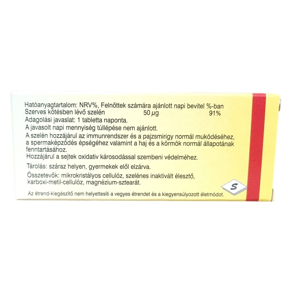 mikrokristályos cellulóz, szelénes inaktivált élesztő, karboxi-metil-cellulóz, magnézium-sztearát
