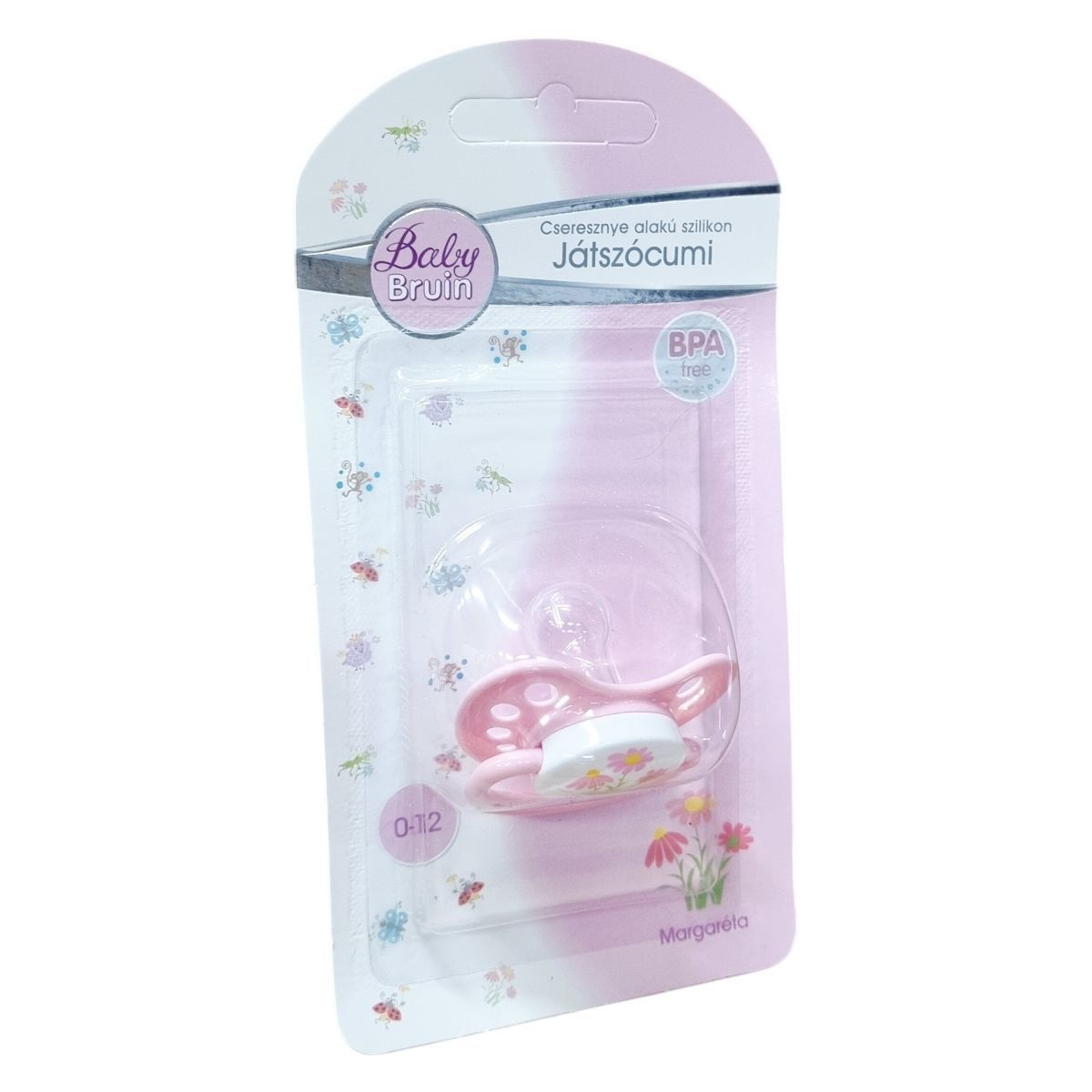 A BabyBruin® cseresznye alakú szilikon játszócumi 0–12 hónapos korú gyermekek számára ajánlott. A cumi a gyártástól számított 5 éven belül felhasználható. A gyártás időpontja a csomagoláson kerül feltüntetésre. A speciális kialakítás megakadályozza a lenyelést, a pajzson kialakított nyílások pedig lehetővé teszik a levegővételt és a bőr folyamatos légzését cumizás közben. Minősége I. osztály. Gyártva Németországban. Importőr: BabyLux Kft.