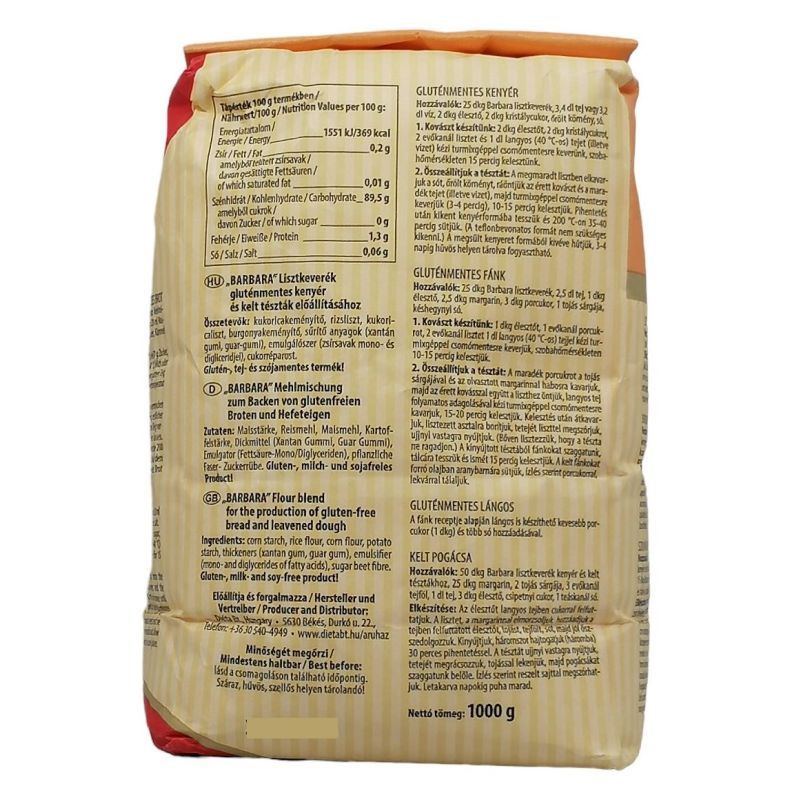 Ez főleg azokra vonatkozik, akik a '80-as években lettek lisztérzékenyek, mert akkor a kukoricaliszt volt "a liszt". Több alapanyag (burgonya-, és kukoricaszármazék) felhasználásával igyekeztünk egy semleges ízű lisztkeveréket előállítani. Összetevők: kukoricakeményítő, rizsliszt, kukoricaliszt, burgonyakeményítő, sűrítő anyagok (xantán gumi, guar-gumi), emulgálószer (zsírsavak mono-, és digliceridjei), cukorréparost. Nettó tömeg: 1000 g. Not. Szám: 1278/2006. Tápérték 100 gramm késztermékben: Energiatartalom: 1551 kJ (369 kcal), Fehérje: 1, 3 g, Szénhidrát: 89, 5 g, Zsír: 0, 2 g. Minőségét megőrzi: 12 hónapig.
