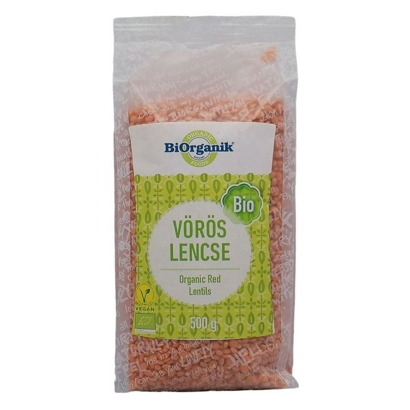 Összetevők: vöröslencse Ellenőrzött ökológiai gazdálkodásból HU-ÖKO-01. Ellenőrizte: Biokontroll Hungária Nonprofit Kft. Felhasználása: köretként, főzeléknek, levesnek, tölteléknek, salátabetétként vagy pástétomnak. Jó tudni: nagyon rövid a főzési ideje és áztatást sem igényel. Kb. 10-15 perc alatt megfő, és eközben a színe vörösről sárgásra változik. Tápanyagtartalom (100g-ban): Energia: 1334 KJ / 314 kcal, Fehérje: 23,5g, Szénhidrát: 51,9g, Zsír: 1,4g. Vitaminok: B1. Ásványi anyagok: vas.