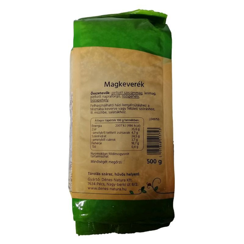 Összetevők pirított szezámmag, lenmag, pirított napraforgó, rozspehely, búzapehely. Nyomokban földimogyorót tartalmazhat.