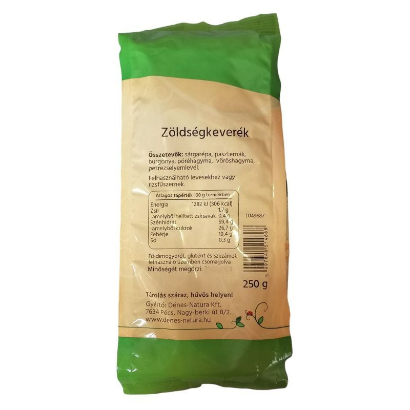 A Dénes Natura zöldségkeverék egy ízletes és tápláló választás mindazok számára, akik szeretnék gazdagítani étrendjüket friss zöldségekkel. Ez a 250 grammos kiszerelés praktikus megoldást kínál a gyors és egészséges étkezésekhez. A zöldségkeverék gondosan válogatott összetevőkből áll, amelyek nemcsak ízletesek, hanem tele vannak vitaminokkal és ásványi anyagokkal is. A termék kiválóan alkalmas mindennapi használatra, legyen szó egy gyors vacsoráról, salátáról vagy akár levesek és főételek kiegészítéséről. A zöldségek frissessége és íze garantálja, hogy minden falat élvezetes legyen, miközben hozzájárul a kiegyensúlyozott táplálkozáshoz.