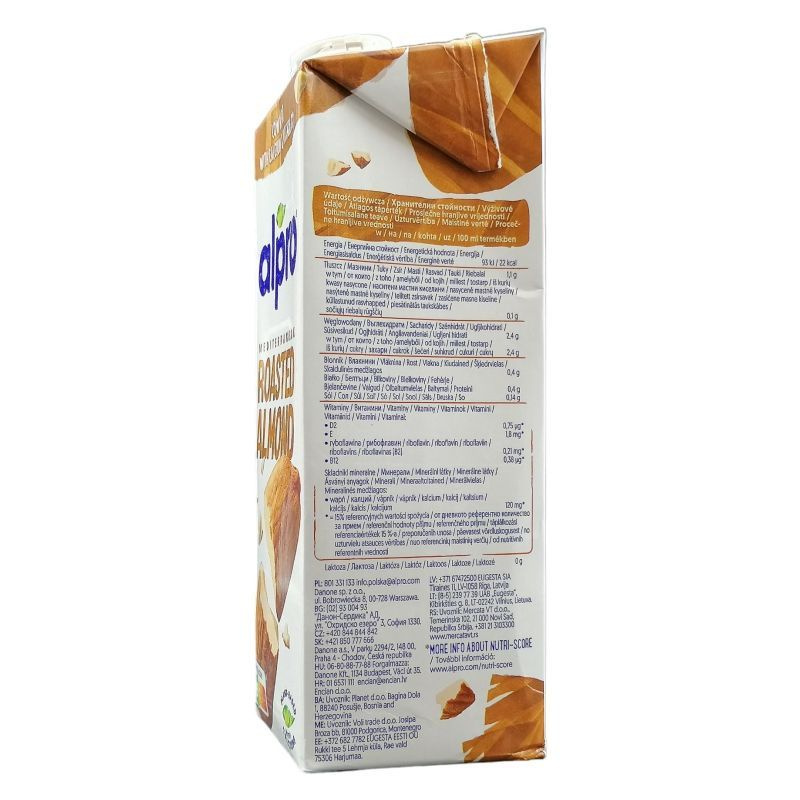Összetevők: ivóvíz, cukor, mandula (2,3%), trikálcium-foszfát, tengeri só, stabilizátorok (szentjánoskenyérliszt, gellángumi), emulgeálószer (lecitinek (napraforgó)), vitaminok (B2, B12, E, D2).