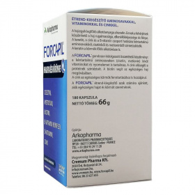 A Forcapil oldat vagy a Forcapil kapszula önálló kezelésre is alkalmas, de egyidejű alkalmazásuk növeli a hatékonyságot. Egy kezeléshez a 60 darabosból három ajánlott, a 180-as egy teljes kúrát tartalmaz. A hatás észleléséhez legalább kéthónapos kezelés szükséges az előírt adagolás szerint. Figyelmeztetés: Az ajánlott adagnál többet nem szabad bevenni! Az étrend-kiegészítő nem helyettesíti a vegyes étrendet és az egészséges táplálkozást! A készítményt gyermekek elől gondosan el kell zárni! Tartalmaz: DL-methionint, L-cisztint, vitaminokat (B5, B6, biotin), cink-pidolátot. Összetevők: DL-methionint, L-cisztint, vitaminokat (B5, B6, biotin), cink-pidolátot tartalmaz