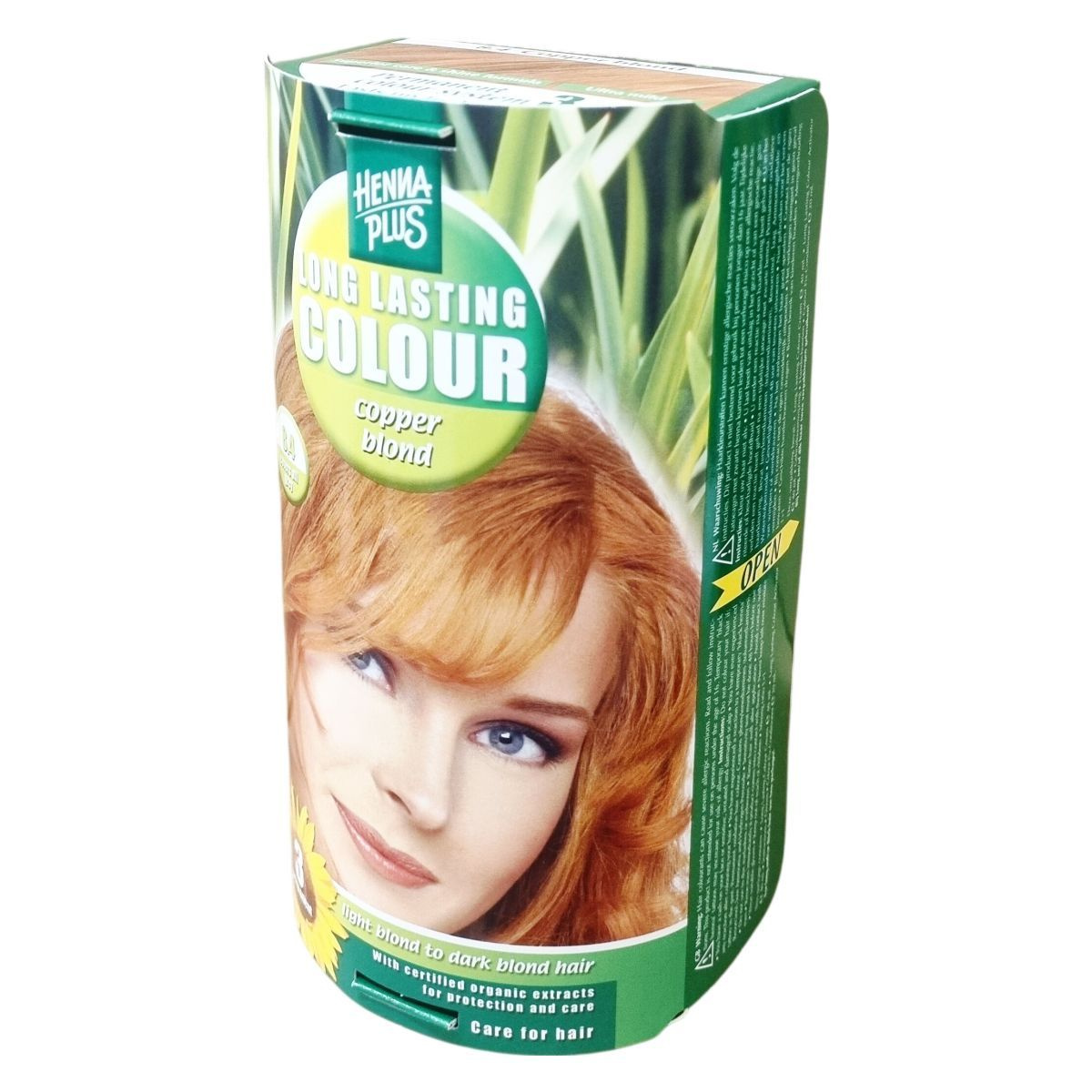A Henna Plus tartós hajfesték krém természetes növényi kivonatokat tartalmaz, amelyek egyszerre festik és ápolják a hajat. A benne lévő henna, martilapu, fa-gyöngy, mályva és búzacsíra kivonatok valamint a napraforgomag-kivonat védi a haj szerkezetét és színét a fakulástól. A hajfesték használatával hosszú ideig tartó, természetes árnyalatú és egészséges fényű haj érhető el, amely befedi a ősz hajszálakat az ajánlott színek kivételével. A csomag tartalma: 40 ml hajfesték krém, 40 ml színelőhívó a felvivő flakonban, 20 ml színfixáló kondicionáló, egy pár kesztyű és használati utasítás. Termék hosszú szőke és sötét szőke hajra, több árnyalatban, beleértve a réz, mahagóni és lilásbarna színeket is. Használatakor körültekintően járjon el a biztonsági előírások betartásával!