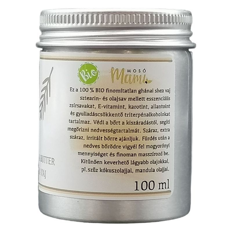 Hidratálja, megnyugtatja, regenerálja a bőrt és gyulladáscsökkentő hatással is rendelkezik. A shea vaj egy Közép-Afrikában élő fa, a karité fa terméséből készül. A karitéfa 20 éves korában hozza első, nagy, szilvára hasonlító, csonthéjas terméseit és akár 200 éven keresztül is terem. A leszüretelt gyümölcsök 60-70% zsírtartalommal rendelkeznek. A tradícionális feldolgozás eredménye egy közepes keménységű, törtfehér színű, édeskés illatú növényi zsiradék, amelyet shea vajnak hívnak. A hidegsajtolás rendkívüli előnye, hogy a shea vaj igen magas A-, E- és F-vitamin tartalmát képes megőrizni, továbbá nem tartalmazza a kémiai kivonáshoz alkalmazott vegyszerek maradékait. Napjainkban a kereskedelemben kapható, mesterséges összetevőket tartalmazó készítmények szinte mindegyike tartalmaz valamilyen kőolajszármazékot (pl. paraffinolajat) amely elfedi a bőr pórusait, ami ezáltal nem képes lélegezni. A sheavaj viszont felszívódik a bőrbe, hosszantartó hidratáló hatást fejt ki, serkenti a bőr öngyógyító képességét. A shea vaj "titka", hogy összetétele nagyon hasonlít az emberi bőrt védő természetes emulzió összetételéhez, vitamintartalma pedig szinte tökéletes bőrápolóvá teszi. Shea vaj használata: önmagában használható bőrápolóként, mely segíti a bőr rugalmasságának megőrzését. Természetesen táplálja és hidratálja bőrét, csökkenti a bőr öregedését, a ráncok kialakulását. Ekcémás bőr ill. neurodermitis esetén a legkiválóbb kozmetikum, napi használat esetén enyhíti a pikkelysömör tüneteit, regeneráló és sebgyógyító hatással rendelkezik, enyhíti a bőr allergiás reakcióját, bőrproblémákat, nyugtató hatással rendelkezik, ajakápolóként is kiváló, segít a terhességi csíkok (stria) kialakulásának megelőzésében. Masszázshoz is használható. Ápolja a törékeny körmöket, hajat. Véd a leégés ellen (2-3 faktornyi védelmet biztosít). Napozás után a shea vaj megnyugtatja az irritált bőrt. Kisebb égési sérülések esetén segíti a bőr regenerálódását. Gyulladáscsökkentő hatása révén alkalmazható kiütésekre, csípésekre. Borotválkozás után nyugtatja és ápolja az irritált bőrt. Bőrpuhító hatású, elősegíti a kirepedezett bőr gyógyulását. Babapopsi kenőcsnek is kiváló. A shea vajat mindig tiszta bőrfelületen alkalmazza. A shea vaj hatékonyságát jelentősen megnövelheti, ha bemasszírozza a bőrbe. A használat gyakoriságát bőrének típusa határozza meg. Eleinte gyakrabban -naponta kétszer, később ritkábban - napi egy alkalommal - lesz rá szüksége. Túladagolni nem lehet, mellékhatása nincs.
