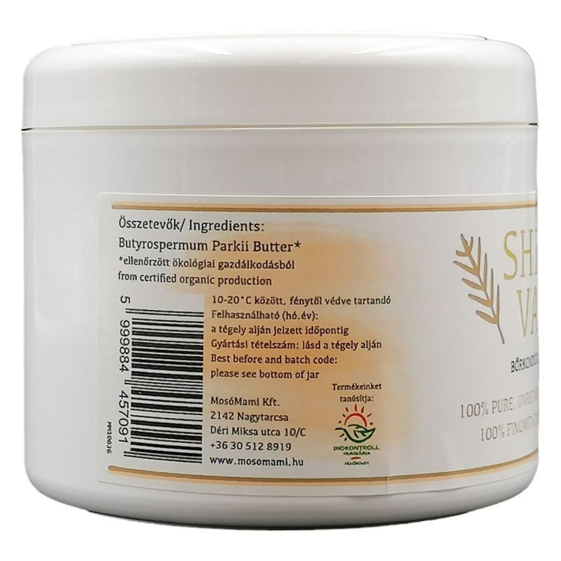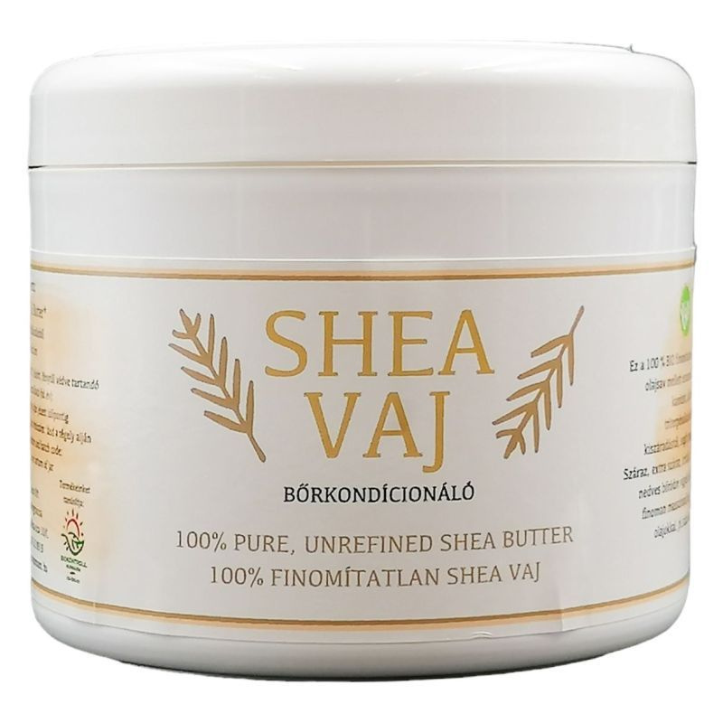 Hidratálja, megnyugtatja, regenerálja a bőrt és gyulladáscsökkentő hatással is rendelkezik. A shea vaj egy Közép-Afrikában élő fa, a karité fa terméséből készül. A karitéfa 20 éves korában hozza első, nagy, szilvára hasonlító, csonthéjas terméseit és akár 200 éven keresztül is terem. A leszüretelt gyümölcsök 60-70% zsírtartalommal rendelkeznek. A tradícionális feldolgozás eredménye egy közepes keménységű, törtfehér színű, édeskés illatú növényi zsiradék, amelyet shea vajnak hívnak. A hidegsajtolás rendkívüli előnye, hogy a shea vaj igen magas A-, E- és F-vitamin tartalmát képes megőrizni, továbbá nem tartalmazza a kémiai kivonáshoz alkalmazott vegyszerek maradékait. Napjainkban a kereskedelemben kapható, mesterséges összetevőket tartalmazó készítmények szinte mindegyike tartalmaz valamilyen kőolajszármazékot (pl. paraffinolajat) amely elfedi a bőr pórusait, ami ezáltal nem képes lélegezni. A sheavaj viszont felszívódik a bőrbe, hosszantartó hidratáló hatást fejt ki, serkenti a bőr öngyógyító képességét. A shea vaj "titka", hogy összetétele nagyon hasonlít az emberi bőrt védő természetes emulzió összetételéhez, vitamintartalma pedig szinte tökéletes bőrápolóvá teszi. Shea vaj használata: önmagában használható bőrápolóként, mely segíti a bőr rugalmasságának megőrzését. Természetesen táplálja és hidratálja bőrét, csökkenti a bőr öregedését, a ráncok kialakulását. Ekcémás bőr ill. neurodermitis esetén a legkiválóbb kozmetikum, napi használat esetén enyhíti a pikkelysömör tüneteit, regeneráló és sebgyógyító hatással rendelkezik, enyhíti a bőr allergiás reakcióját, bőrproblémákat, nyugtató hatással rendelkezik, ajakápolóként is kiváló, segít a terhességi csíkok (stria) kialakulásának megelőzésében. Masszázshoz is használható. Ápolja a törékeny körmöket, hajat. Véd a leégés ellen (2-3 faktornyi védelmet biztosít). Napozás után a shea vaj megnyugtatja az irritált bőrt. Kisebb égési sérülések esetén segíti a bőr regenerálódását. Gyulladáscsökkentő hatása révén alkalmazható kiütésekre, csípésekre. Borotválkozás után nyugtatja és ápolja az irritált bőrt. Bőrpuhító hatású, elősegíti a kirepedezett bőr gyógyulását. Babapopsi kenőcsnek is kiváló. A shea vajat mindig tiszta bőrfelületen alkalmazza. A shea vaj hatékonyságát jelentősen megnövelheti, ha bemasszírozza a bőrbe. A használat gyakoriságát bőrének típusa határozza meg. Eleinte gyakrabban -naponta kétszer, később ritkábban - napi egy alkalommal - lesz rá szüksége. Túladagolni nem lehet, mellékhatása nincs.