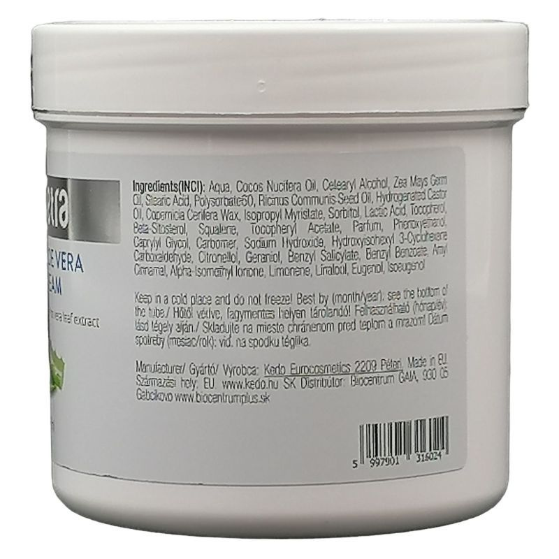 A krém aloe vera kivonata erős hidratáló hatással bír, mely segít helyreállítani a bőr természetes hidratáltságát. Gazdag vitaminokban és ásványi anyagokban, amelyek táplálják a bőrt, és elősegítik a sebek gyorsabb gyógyulását. Az aloe vera természetes gyulladáscsökkentő hatása pedig segít enyhíteni a bőrpírt és irritációt, így minden bőrtípus számára ideális.