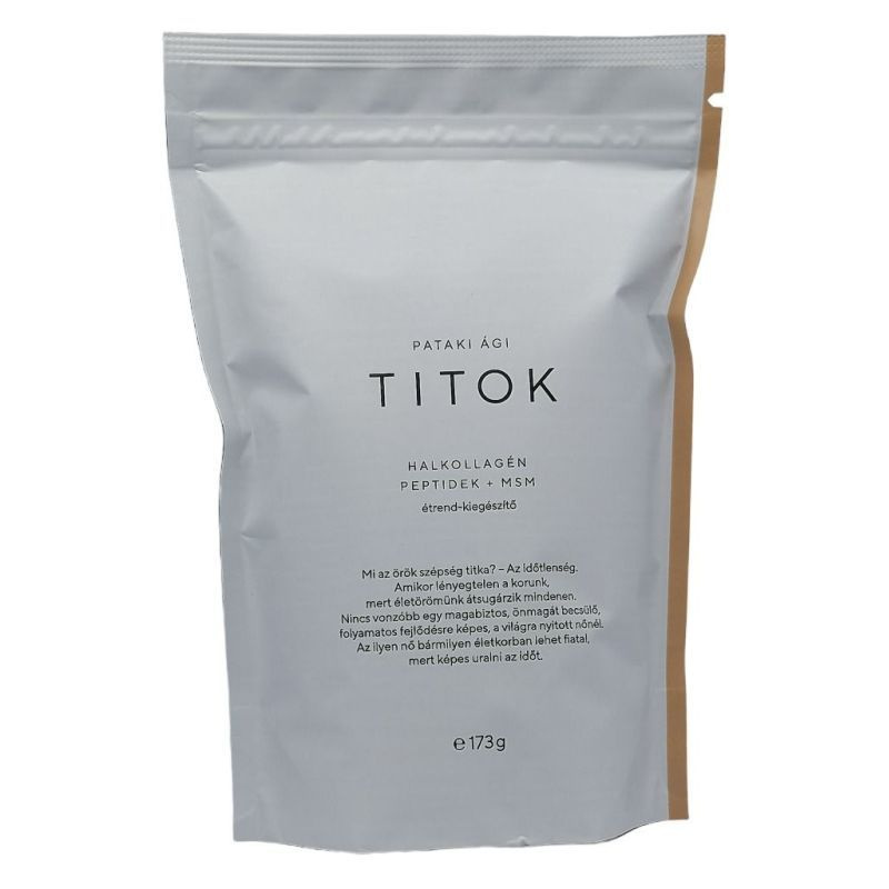 Felhasználási javaslat: A TITOK Halkollagén peptidek + MSM napi ajánlott adagja 5,75 gramm (2 púpos teáskanálnyi), tehát a tasakban lévő teljes, havi mennyiség harmincadrésze. Az adagolása nem szigorú, így egyáltalán nem baj, ha egyik nap kicsit többet, másik nap kicsit kevesebbet vesz be. Tetszőleges napszakban, bármilyen folyadékba belekeverhető, de elkeverés nélkül és elegyedés előtt, akár egy presszókávés csészébe engedett kevéske víz tetejéről is lehörpinthető, pár korty ivásával utána. Persze egy finom, reggeli turmixba keverve hangulatosabb, remek indítója a napnak.