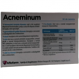 Az Acneminum növényi kivonatokat, cinket, niacint és B6-vitamint tartalmazó étrend-kiegészítő tabletta.